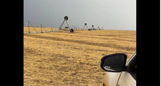 “Infelizmente passou um vento muito forte, com pedra, e acabou botando abaixo oito lances de um pivô de 120 hectares. Graças a Deus não machucou ninguém, isso é o mais importante. Agora é levantar e seguir em frente”, relatou Antonini no vídeo.
