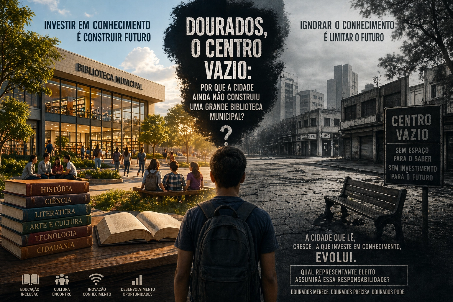 Toda cidade revela prioridades não apenas pelo que constrói, mas também pelo que deixa de construir. Nesse sentido, a falta de um espaço público amplo, moderno e acessível dedicado ao conhecimento levanta uma questão inevitável: qual é, hoje, o lugar do saber no projeto urbano de Dourados?