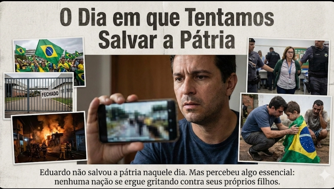 Não foi alguém importante. Não foi um livro. Foi um vídeo curto, desses que aparecem entre uma música e outra. A imagem tremia, a voz era firme, e a frase parecia óbvia demais para ser questionada: “O Brasil foi humilhado. Roubado. Corrompido por eles.”