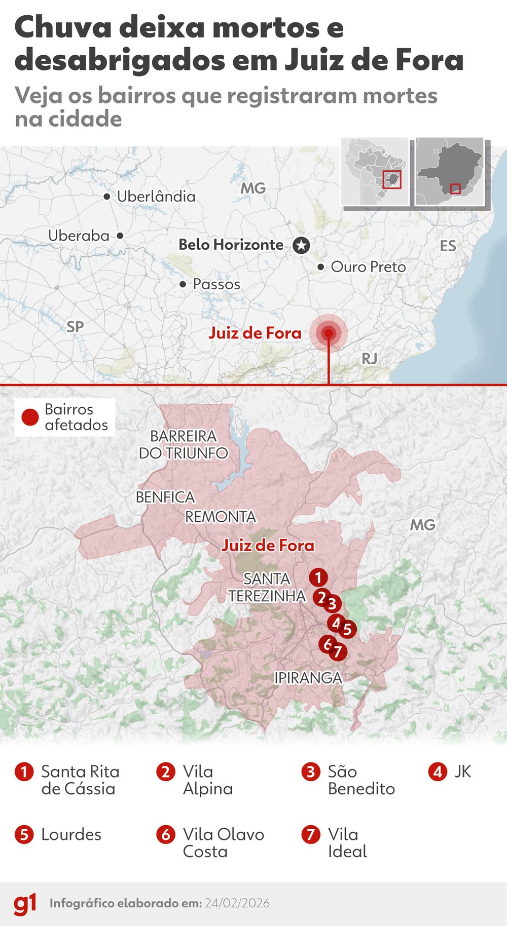 Segundo a prefeitura de Juiz de Fora, este é o fevereiro mais chuvoso da história da cidade, com 584 milímetros acumulados, o dobro do esperado para o mês.